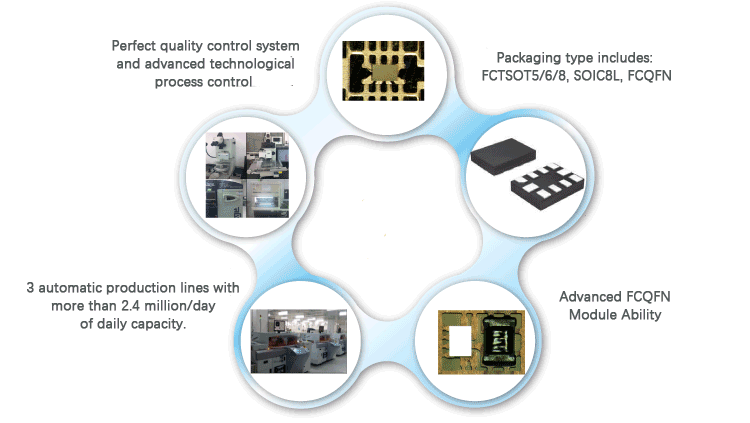 ●Now, Anst can provide full series of packaging technologies including copper pillar and solder ball type of Flip Chip on lead frame (interconnection of chip and lead frame)